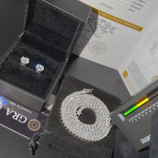 Set with D Color, VVS1 clarity lab-created moissanite, each stone delivers exceptional fire and brilliance — shining even brighter than traditional diamonds while offering unmatched value.